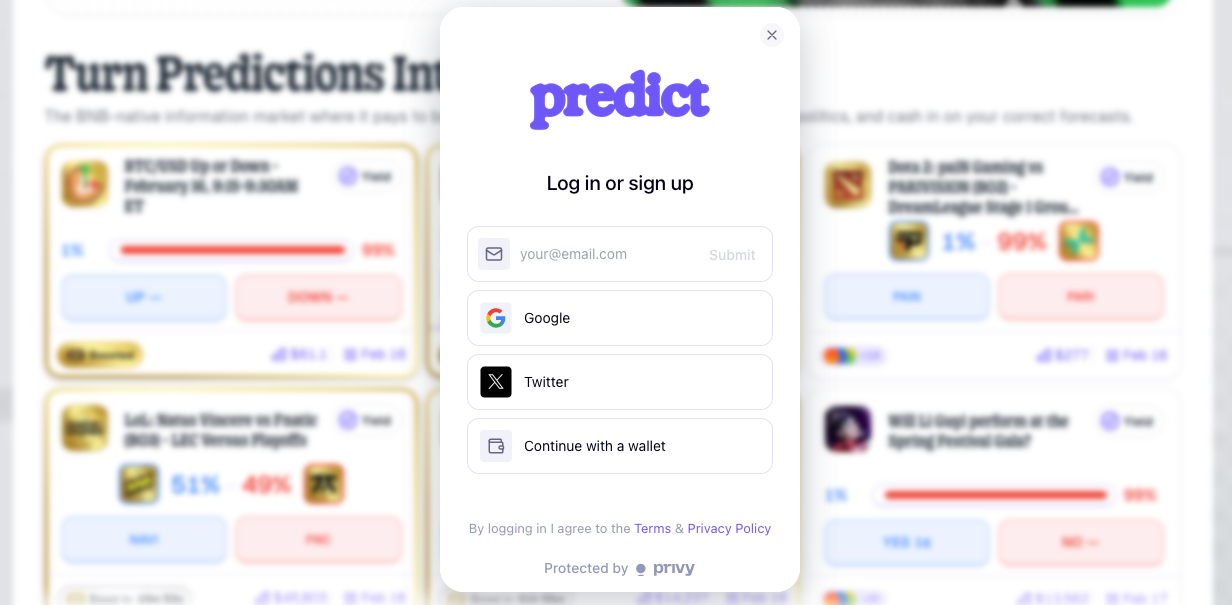 Predict supports other authentication methods such as X, Google or email, but to be eligible for this promotion, you must use a wallet.